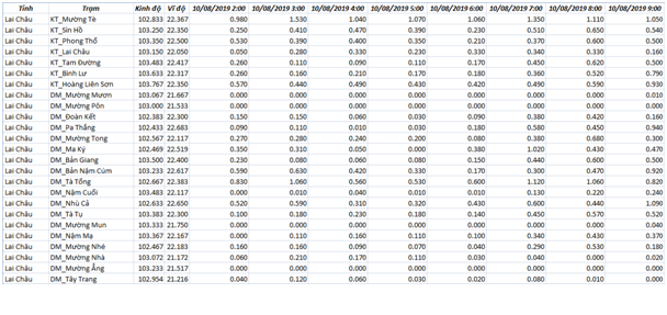 Kết quả được thể hiện dưới dạng file excel, chúng có thể chuyển định dạng sang text, ascii để phục vụ việc thiết lập file đầu vào cho chạy mô hình thủy văn, thủy lực.
