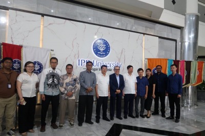 Đoàn công tác cùng các chuyên gia, thành viên dự án chụp ảnh lưu niệm tại Đại học Nông nghiệp Bogor, In-đô-nê-xi-a